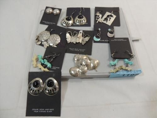LOT 9 NATIVE AMERICAN STERLING SILVER, BLACK ONYX & TURQUOISE EARRINGS. AS SHOWN. VIEW PICTURE FOR DETAIL.