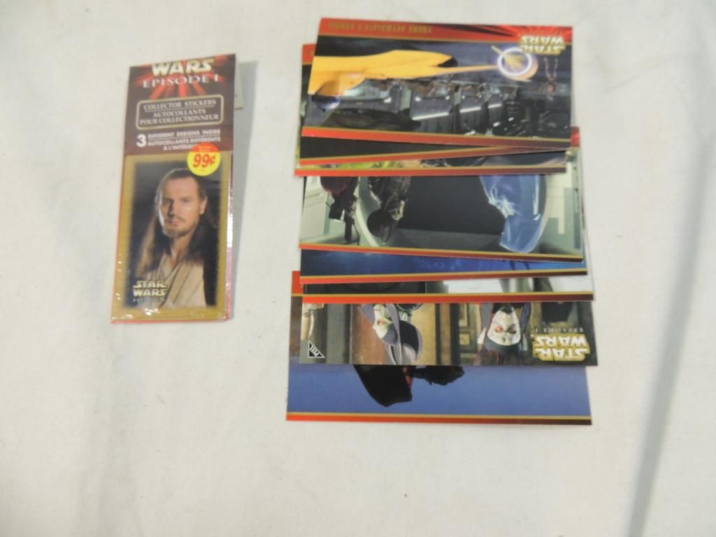 ASSORTED STAR WARS TRADING CARDS AND STICKERS. AS SHOWN SEE PHOTO FOR MORE DETAILS.