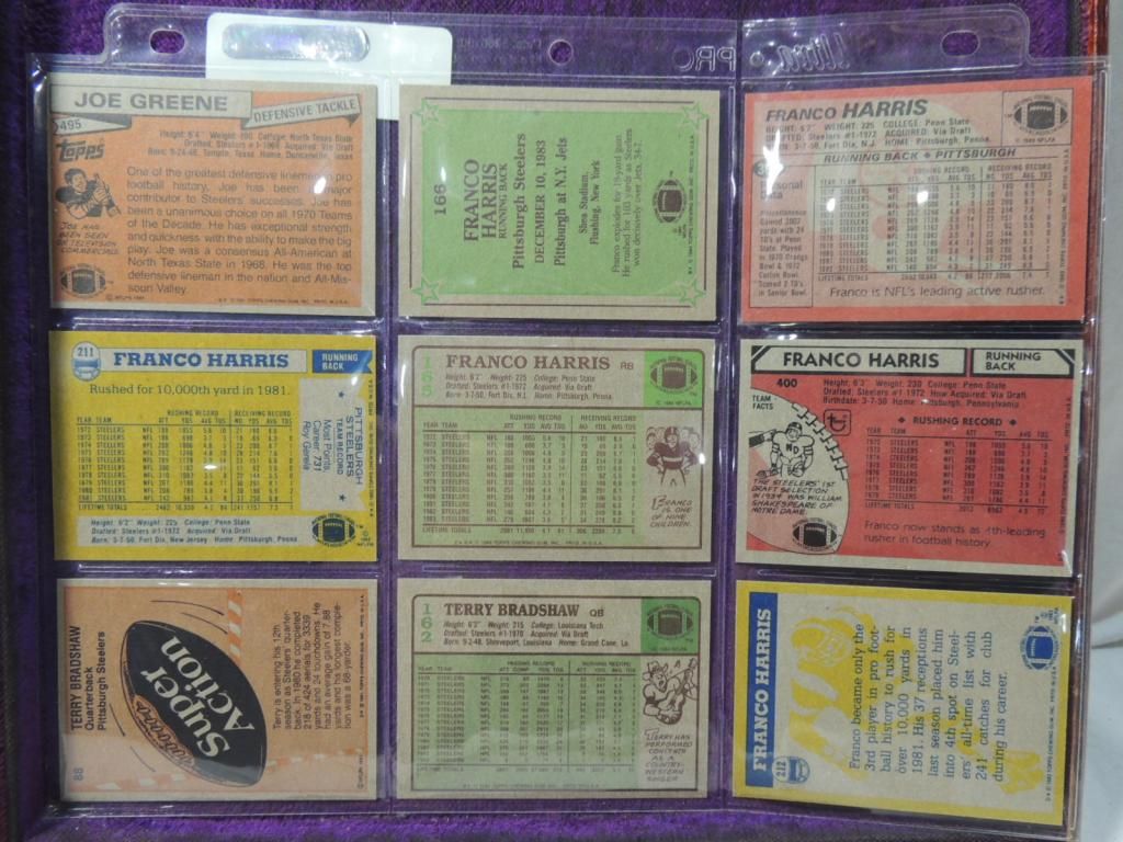 FOOTBALL  PLAYER CARDS. TRADING CARDS. COLLECTIBLE. IN GOOD CONDITION. BINDER SHEETS. AS SHOWN SEE PHOTO FOR MORE DETAILS