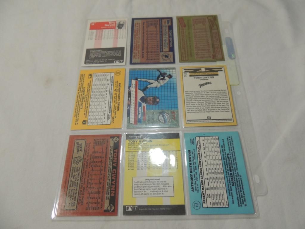 MIXED MAKERS AND YEARS. ALL TONY GWYNN. GOOD CONDITION. IN BINDER SHEET BASEBALL PLAYER CARDS. BASEBALL TRADING CARDS. VINTAGE CARDS. AS SHOWN. SEE PHOTO FOR MORE DETAILS.