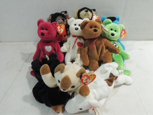 LOT 9 TY PLUSH BEANIE BABIES: VALENTINO, BUTCH,