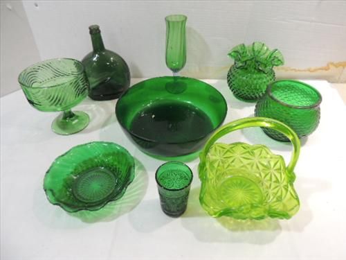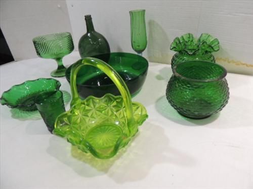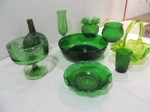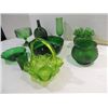 LOT 9 VINTAGE EMERALD GREEN GLASSWARE: COMPOTE,