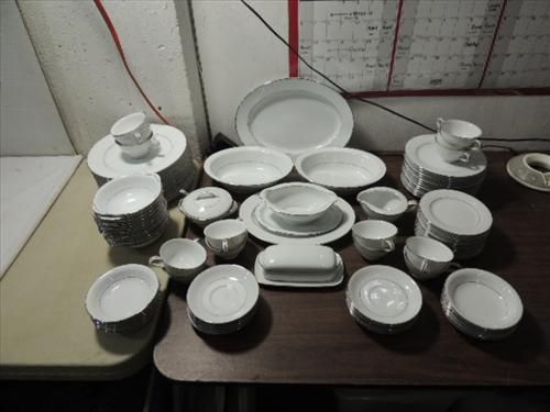 LOT 93 PCS NORITAKE FINE CHINA BUCKINGHAM PATTERN. 12 DINNER PLATES, S SERVERING PLATTERS, 2 SERVING BOWLS, 1 COVERED BUTTER DISH, 1 CREAMER & SUGAR, 12 SOUP BOWLS, 14 COFFEE CUPS, 12 SAUCERS, 12 LUNCHEON PLATES, 12 BERRY BOWLS, 12 DESSERT PLATES AND 1 GRAVEY BOWL. AS SHOWN. VIEW PICTURE FOR DETAIL.