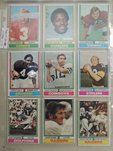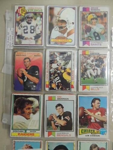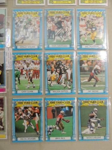 LOT 98 ASSORTED FOOTBALL PLAYER CARDS: (18) 1987 TOPPS 1000 YARD RUSHER, (17) 1986 TOPPS 1000 YARD RUSHER, 54 ASSORTED YEAR STAR FOOTBALL PLAYERS, 9 1974 TOPPS HALL OF FAME FOOTBALL CARDS. A SSHOWN. VIEW PICTURE FOR DETAIL.