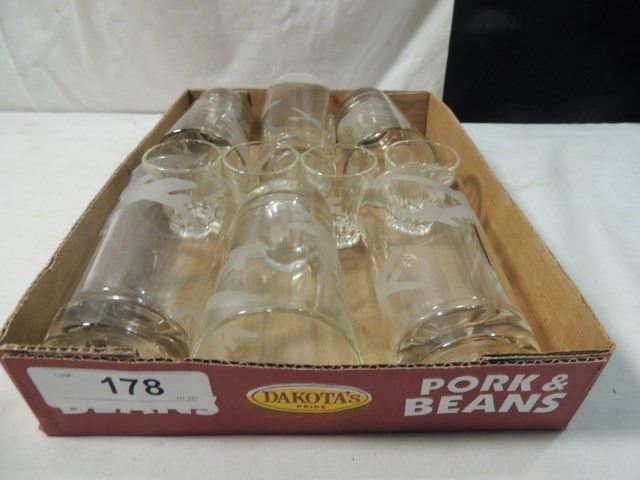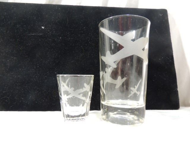 NICE SET OF SIX TALL BEVERAGE GLASSES, WITH 4 MATCHING SHOT GLASSES. LIKELY AIRLINE WARE??
