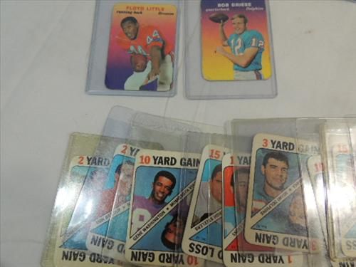 LOT APPOX 50 1971 TOPPS FOOTBALL GAME CARDS & MIXED GROUP OF MISCELLANEOUS CARDS. AS SHOWN. VIEW PICTURE FOR DETAIL.