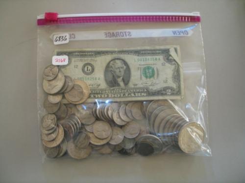LOT, ASSORT. COINS (5) $2 BILLS, (3) 1921 MORGAN, (3) PEACE, (3) IKE DOLLARS & ASSORT. SILVER COINS