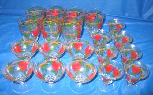 LOT, ASSORTED GLASSWARE (20 PC) W/APPLE PATTERN
