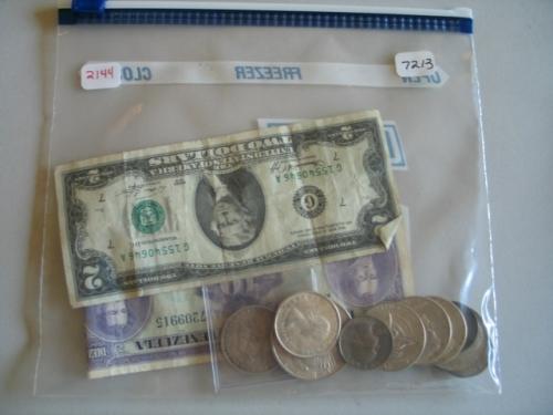 LOT, ASST. COINS INCLUDING PEACE DOLLAR, $2 NOTE & FOREIGN MONEY