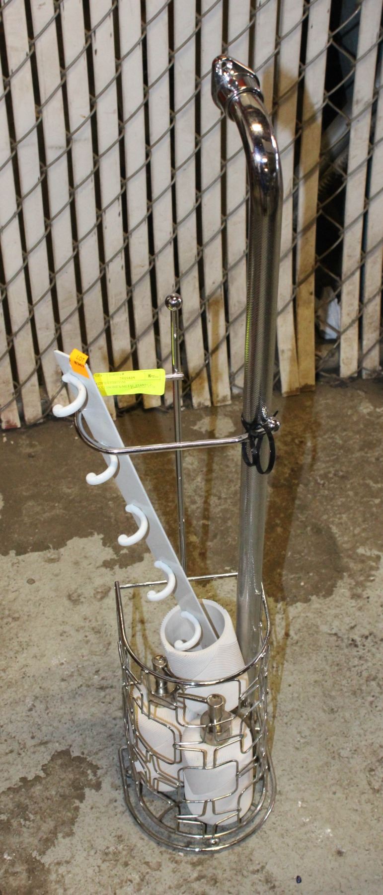 TP HOLDER, TUB SAFETY BAR, NEW PLUNGER, LOTION CONTAINERS AND 2 GARBAGE CANS