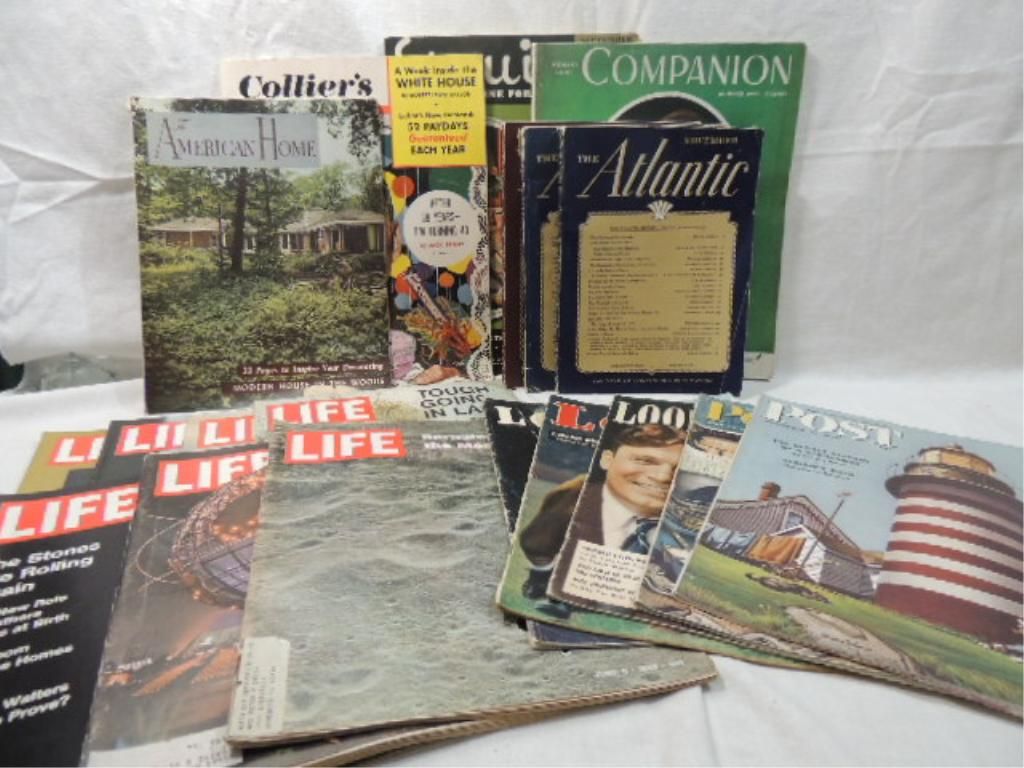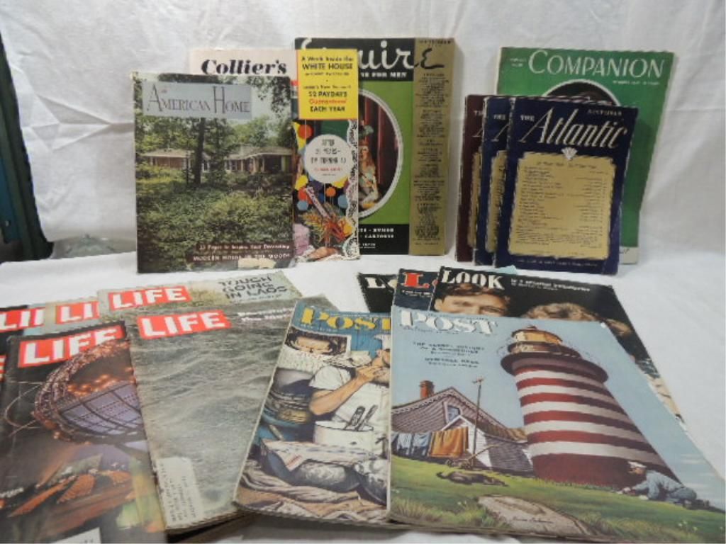 LOT MIXED BOX 1930's -1950's MAGAZINES. ESQUIRE, LIFE, THE ATLANTIC, LOOK, POST. AS SHOWN. SEE PHOTO FOR DETAILS.