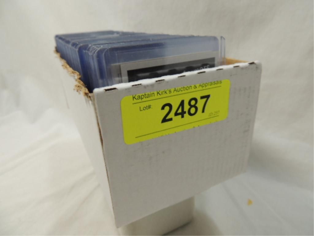 LOT BOX BASEBALL PLAYER CARDS IN SLEEVES. MIXED MAKERS AND YEARS. AS SHOWN SEE PHOTO FOR MORE DETAILS.