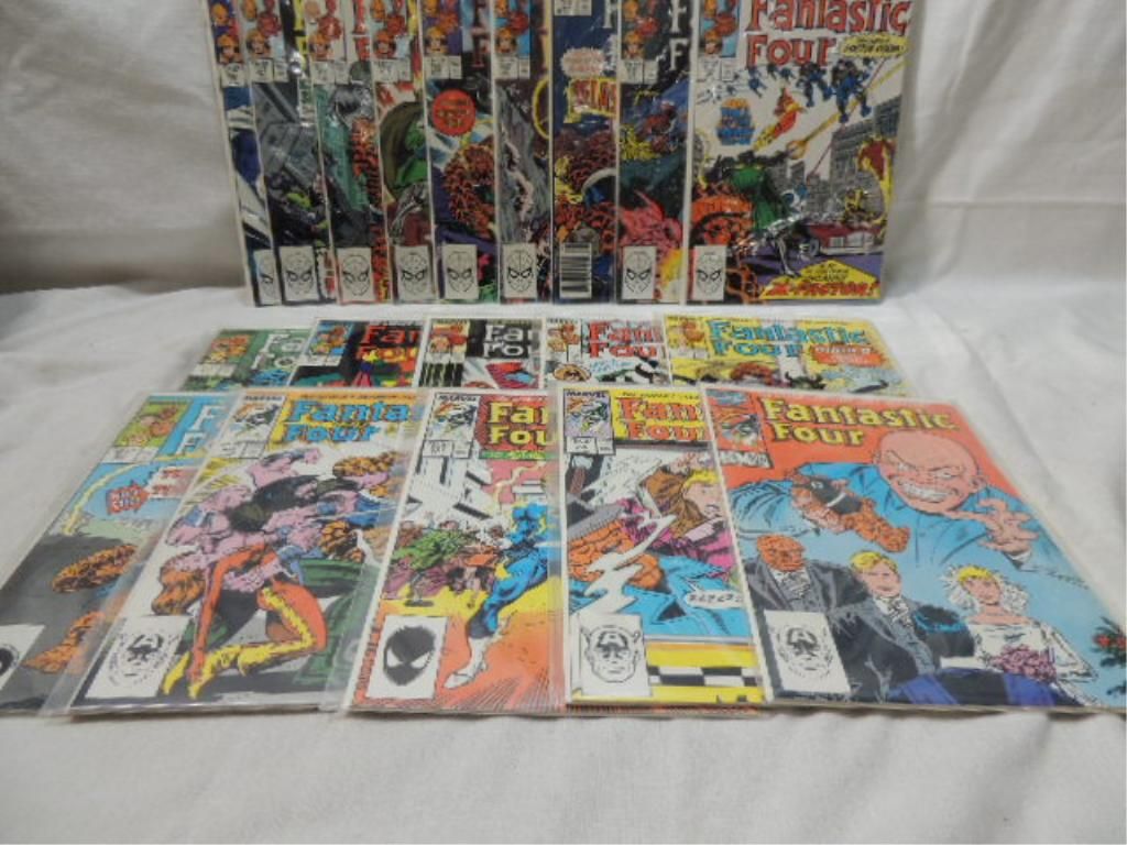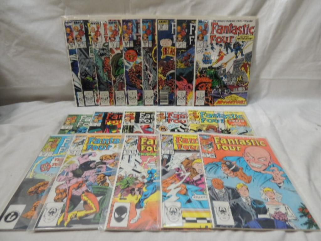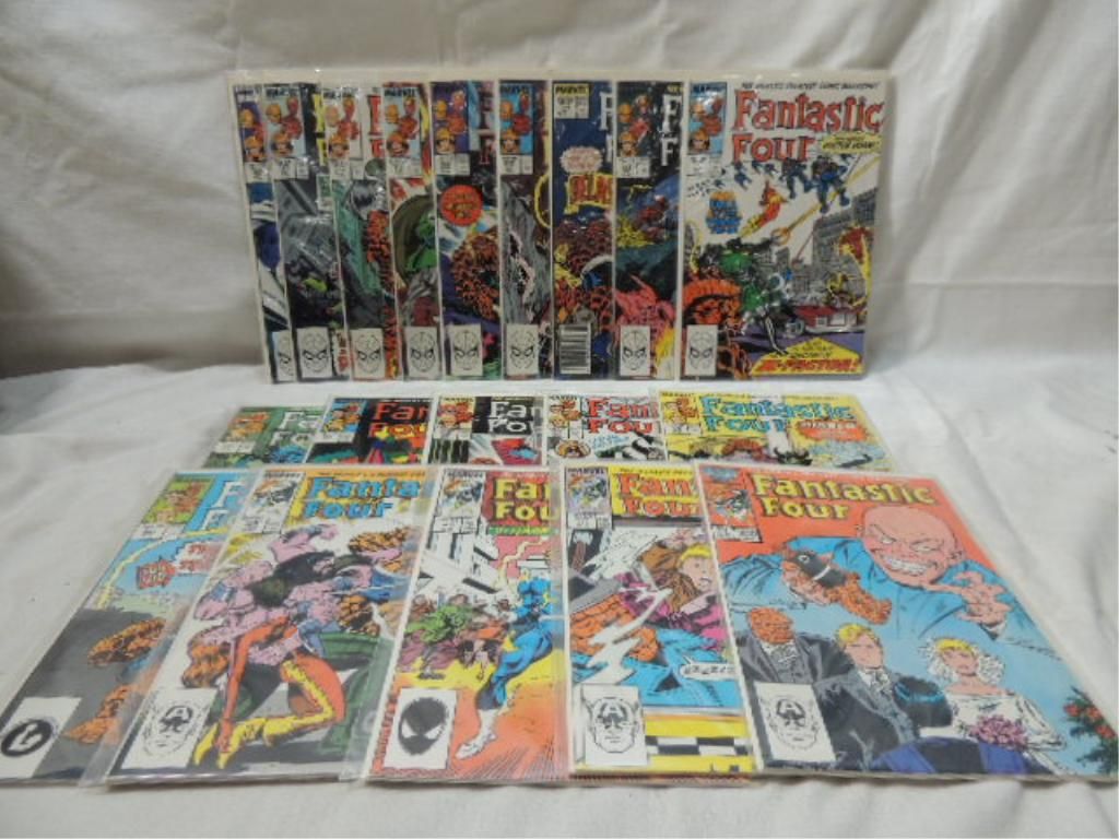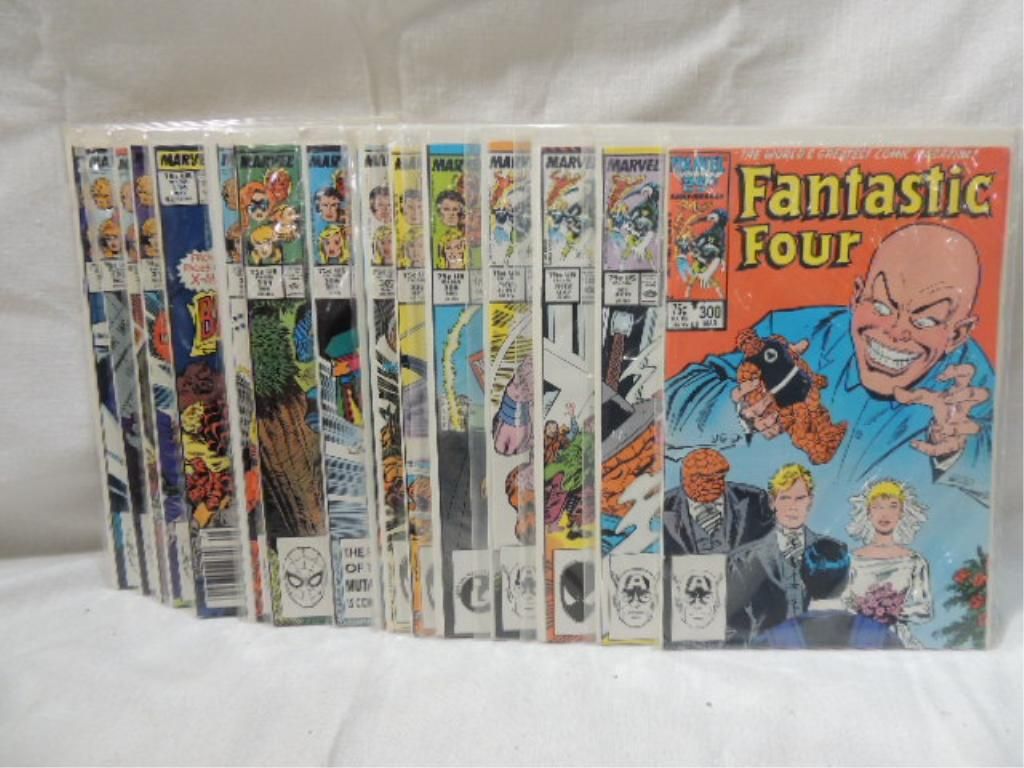 LOT BOX FANTASTIC FOUR MARVEL COMIC BOOKS. MIXED RUN 300-322. AS SHOWN. SEE PHOTO FOR DETAILS.