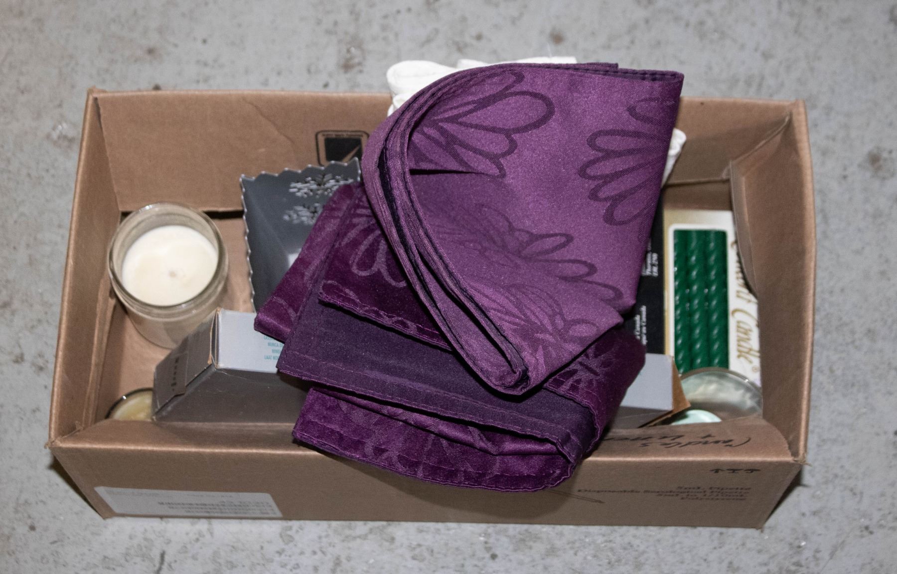 CANDLE WARE & LINENS: CANDLES, CANDLE HOLDERS, TEA LIGHTS, NAPKINS AND TABLE RUNNERS (2)
