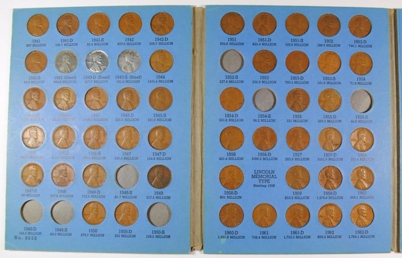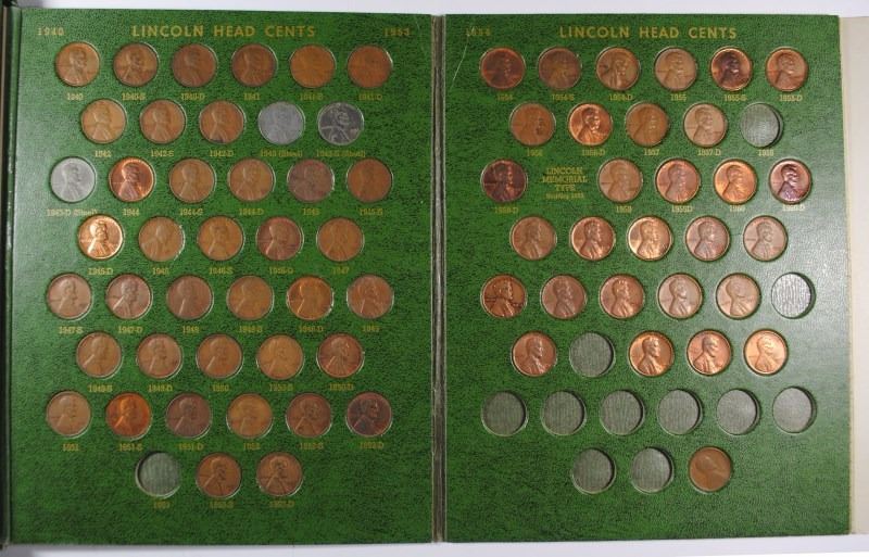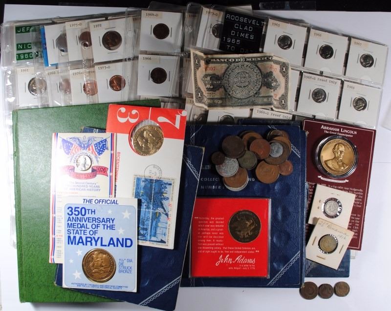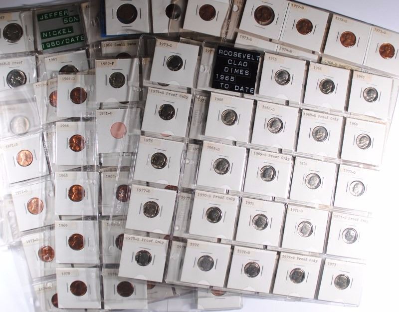 SET OVER 130 COINS WITH 1912-S, OTHERS: JEFFERSON NICKEL WITH PROOFS, LINCOLN ONE CENT WITH PROOFS, 4- U.S MEDALS, ROOSEVELT DIME WITH PROOFS, 1941 LINCOLN ONE CENT PARTIAL SETS