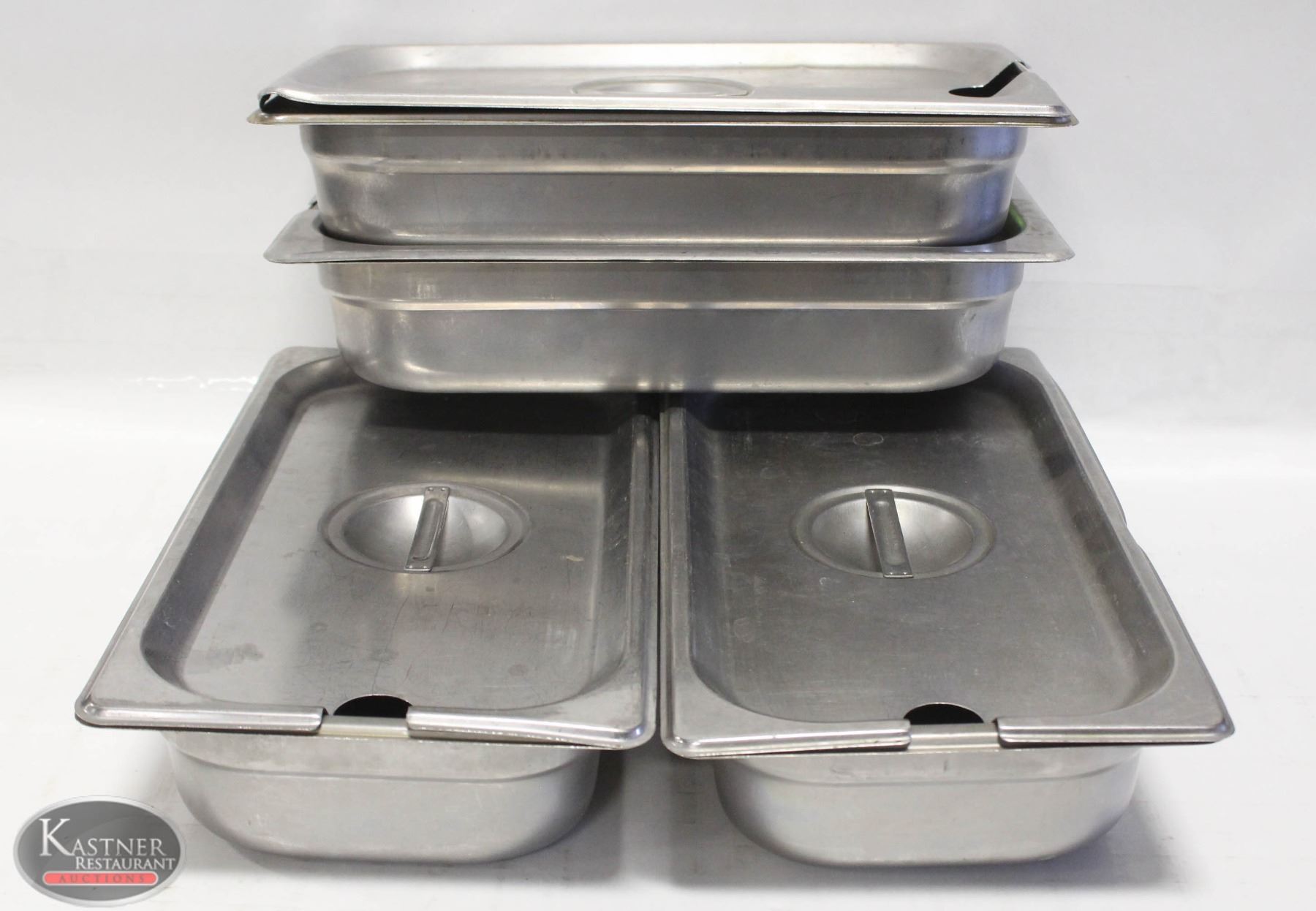LOT FOUR 1/3 SZ STAINLESS STEEL INSERTS W/ LIDS-2"
