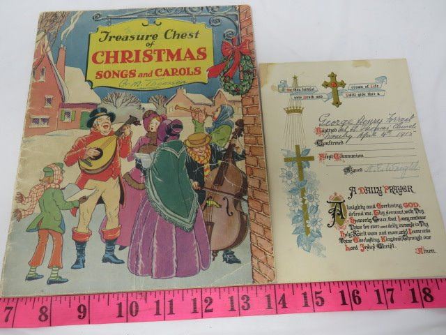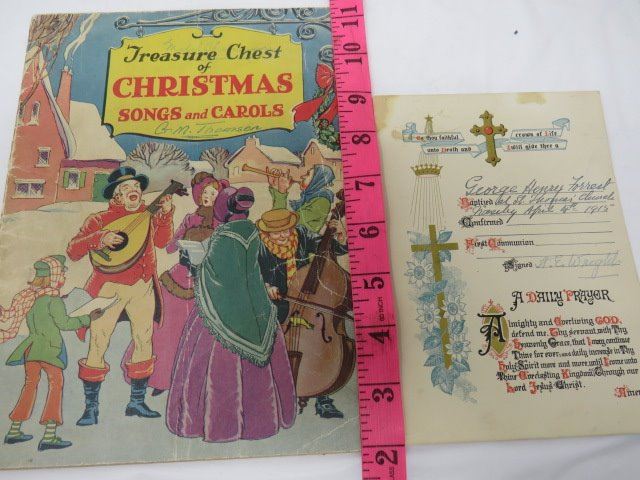 LOT INCLUDING, 1915 COMMUNION CARD AND 1936 CHRISTMAS BOOK