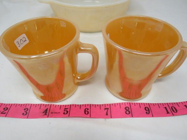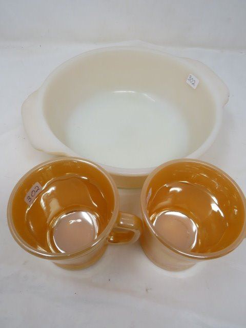 LOT INCLUDING 2 CUPS AND 1 BAKING DISH (FIREKING)