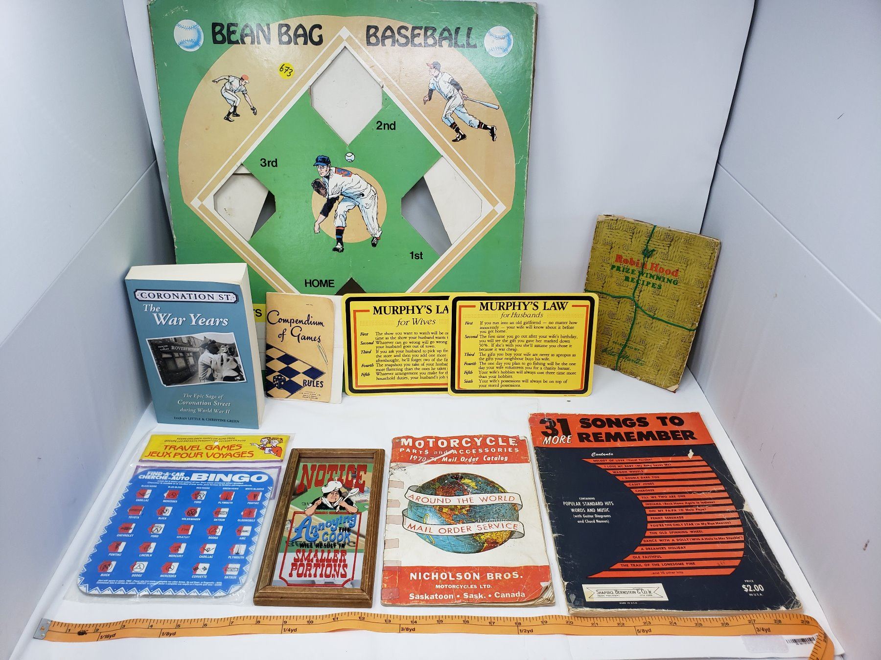 LOT INCLUDING A VINTAGE GAME, BOOK, COOK BOOKS ETC…