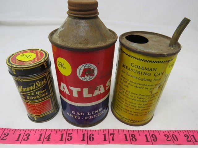 LOT INCLUDING, ATLAS GAS-LINE ANTIFREEZE, COLEMAN MEASURING CAN AND ZENITH-TIBET ALMOND STICK