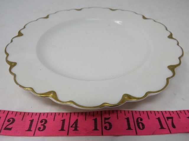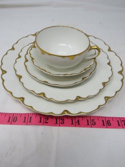 LOT INCLUDING, DINNER PLATE, SALAD BOWL, SAUCER, DESSERT PLATE (CHINA WHITE AND GOLD IN COLOR) *THEODORE HAVILAND* (LIMAGES FRANCE)