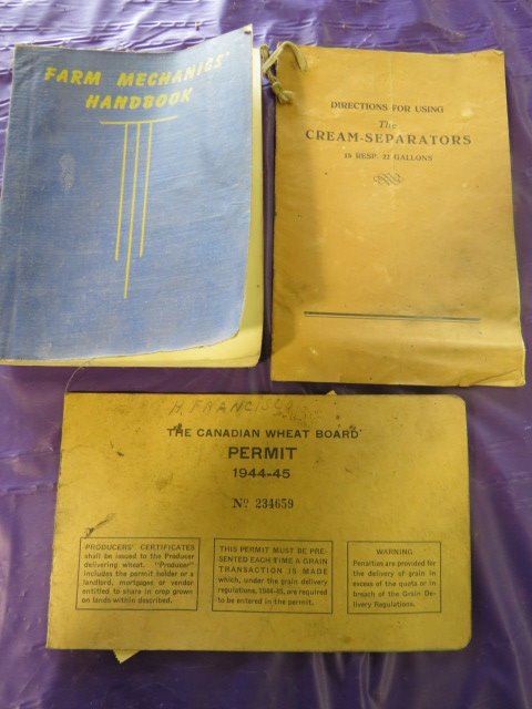 LOT INCLUDING FARM MECHANICS HANDBOOK (CREAM SEPERATORS, THE CANADIAN WHEAT BOARD PERMIT 1944-45)
