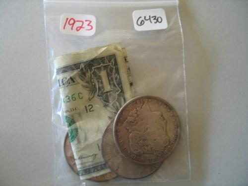 LOT, MORGAN & PEACE DOLLAR, $1 BILL & COIN