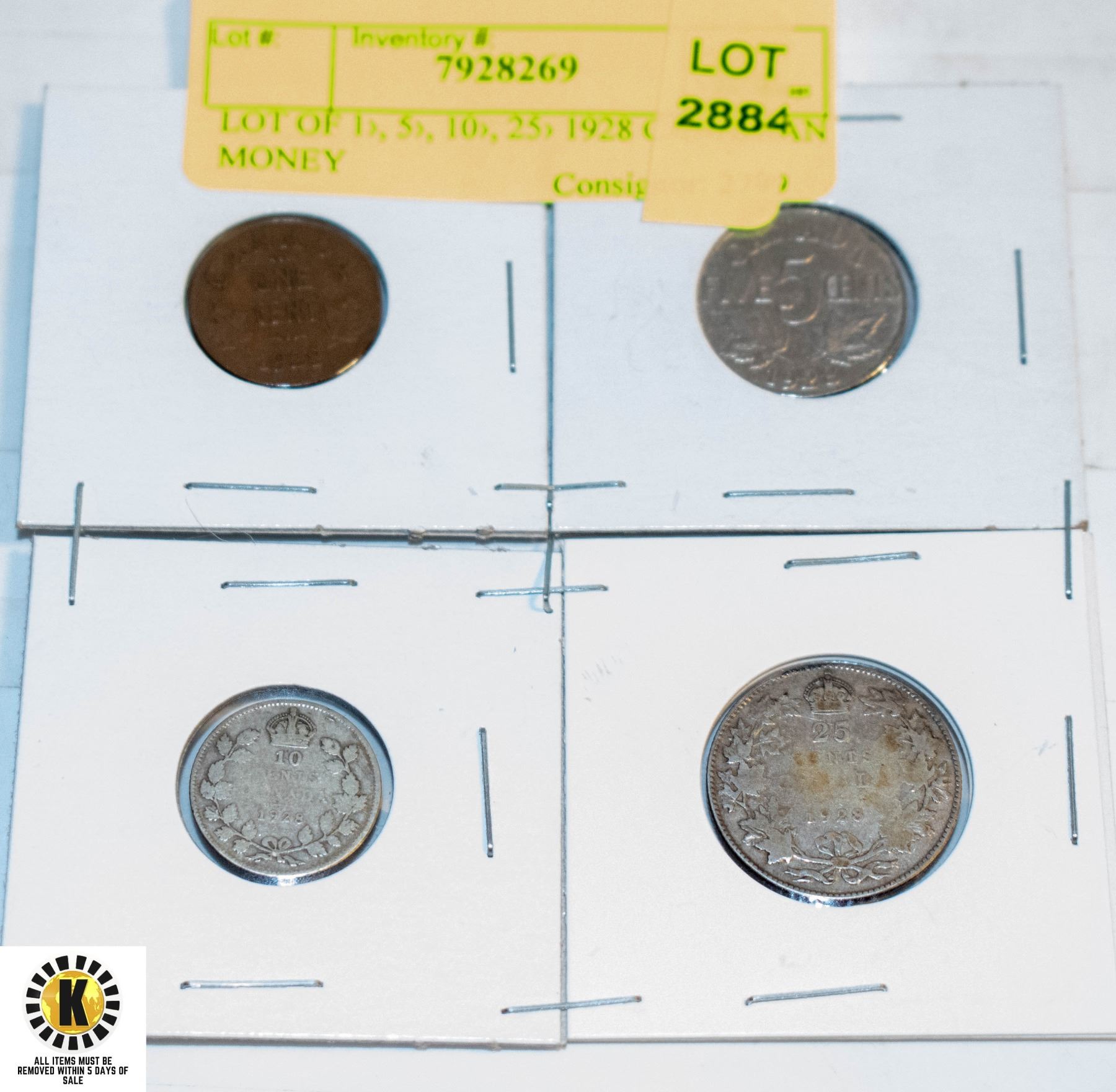 LOT OF 1›, 5›, 10›, 25› 1928 CANADIAN MONEY