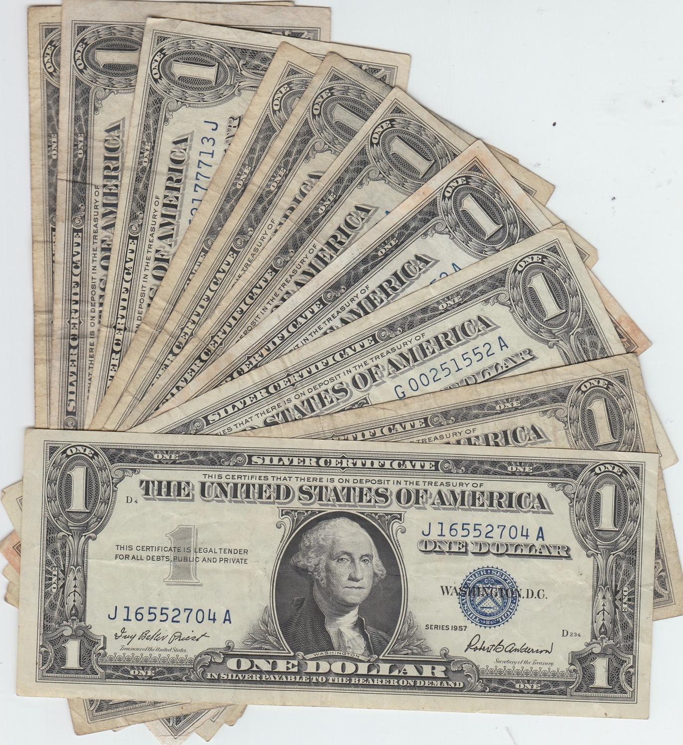 LOT OF 10 $1 SILVER CERTIFICATES INCLUDING 2 1935 PLAIN