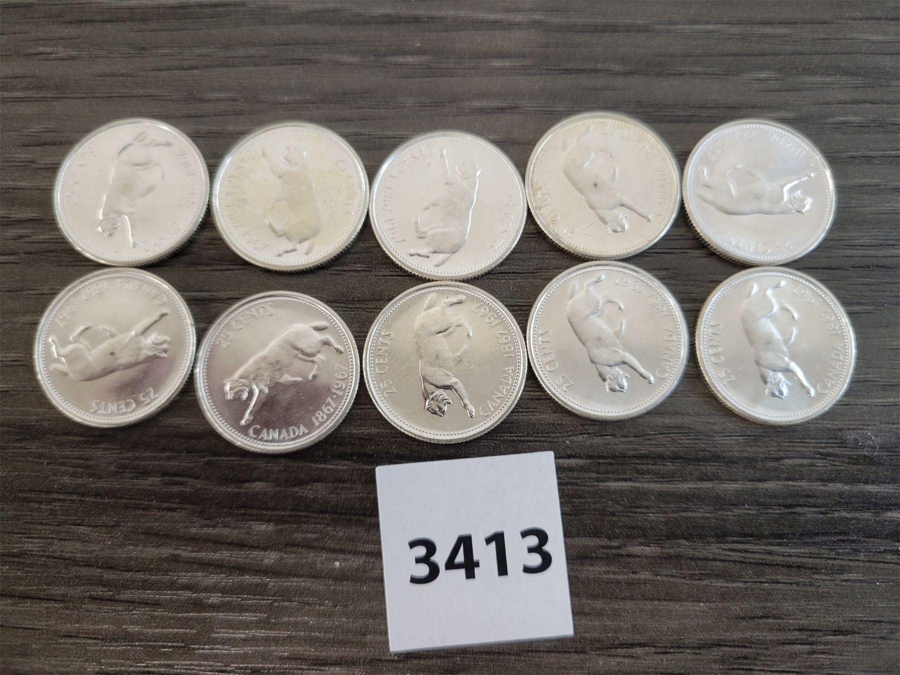 LOT OF 10 - 1867-1967 CDN 25 CENT PCS