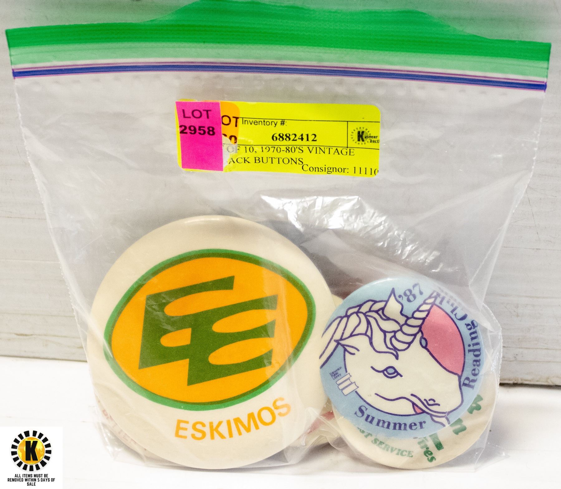 LOT OF 10, 1970-80'S VINTAGE PINBACK BUTTONS