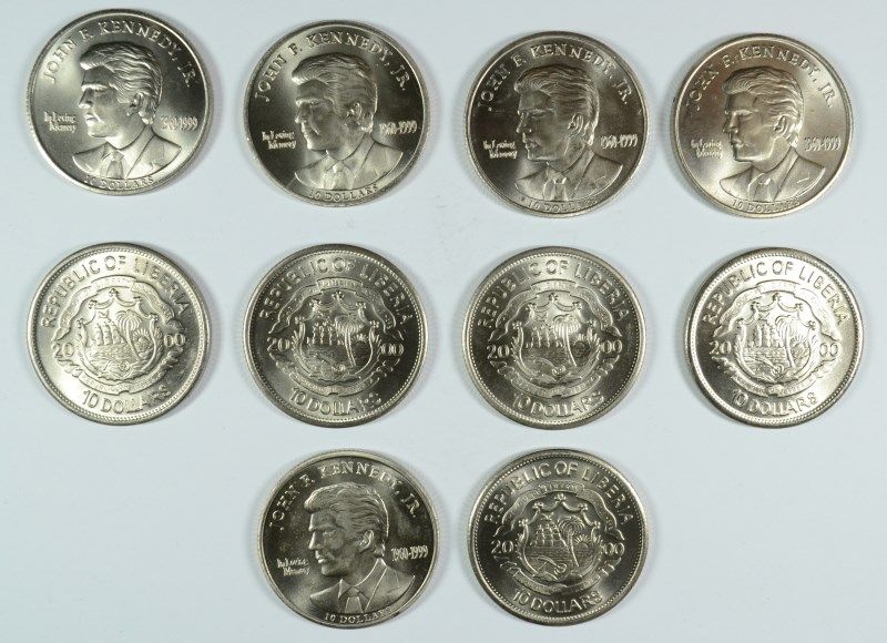 LOT OF ( 10 ) 2000. JFK JR. REPUBLIC OF LIBERIA, $10.00 COINS