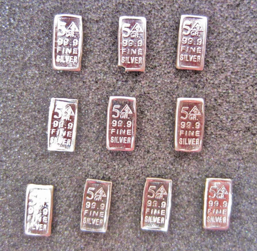 LOT OF 10 5 GRAIN INGOT BARS OF 99.9 PURE SILVER