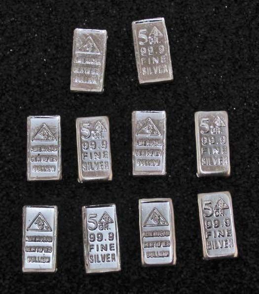 LOT OF 10 5 GRAIN INGOT BARS OF .999 SILVER BULLION