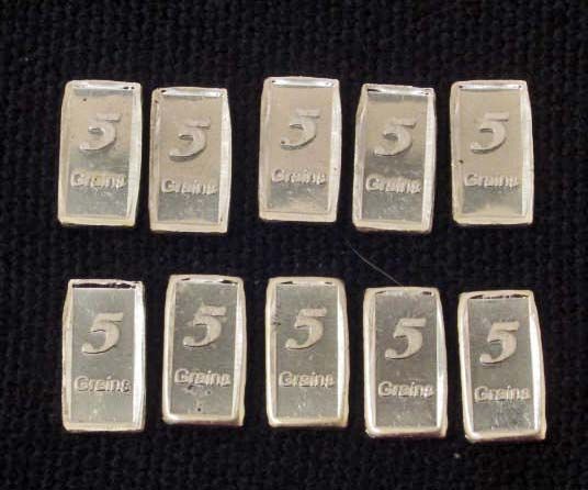 LOT OF 10 .999 PURE SILVER 5 GRAIN INGOT BARS