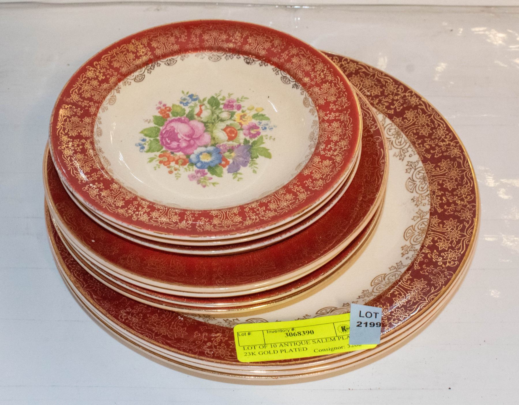 LOT OF 10 ANTIQUE SALEM PLATES 23K GOLD PLATED