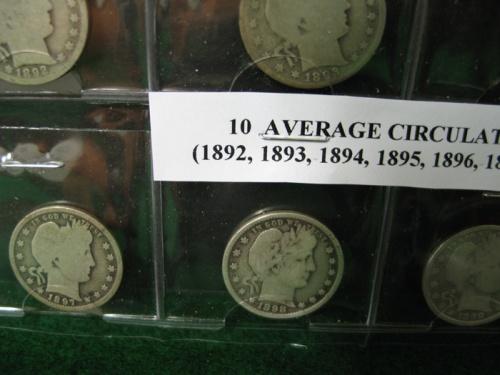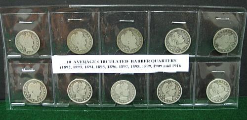 LOT OF 10 CIRCULATED BARBER QUARTERS. Dates include 1892, 1893, 1894, 1895, 1896, 1897, 1898, 1899, 1909, and 1916.