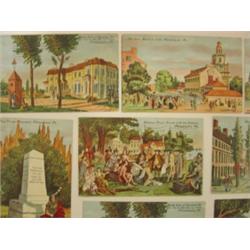 LOT OF 10 PHILADELPHIA POSTCARDS FEATURING COLONIAL SCENES & LANDMARKS. Four feature Oct. 4-10, 1908 Founder's Week logo on reverse in upper left. Five are postmarked 1908 and one is postmarked illegibly.