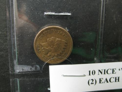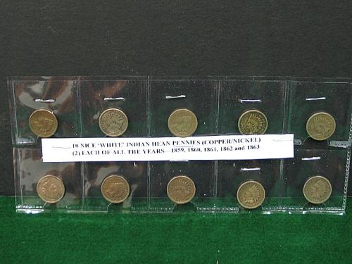 LOT OF 10 COPPER AND NICKEL INDIAN HEAD CENTS. Consists of 2 1859 coins, 2 1860 coins, 2 1861 coins, 2 1862 coins, and 2 1863 coins.