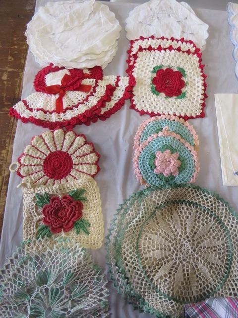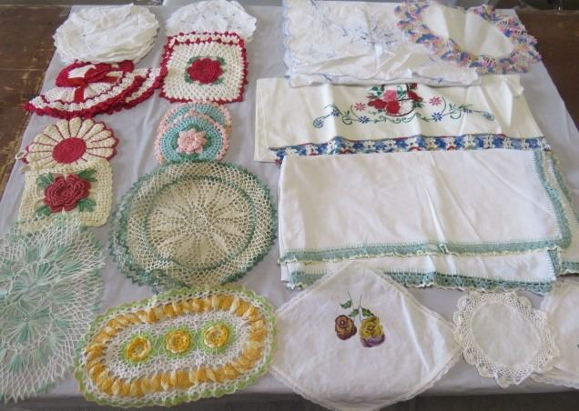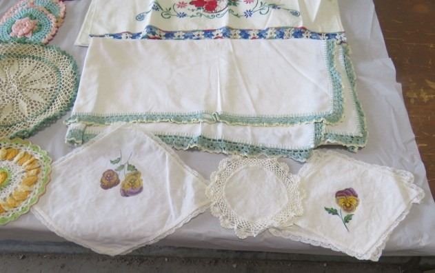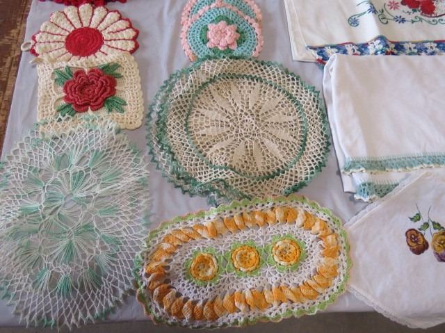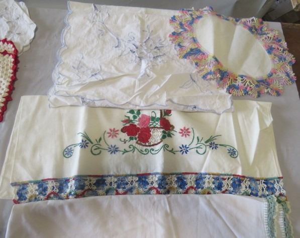 LOT OF 10+ DOILIES AND EMBROIDERED COTTON