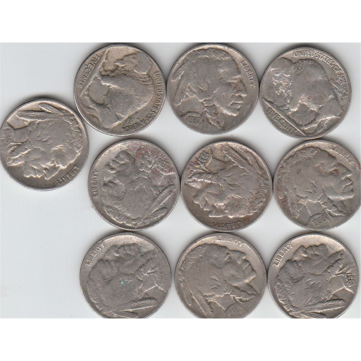 LOT OF 10 FULL DATE BUFFALO NICKELS