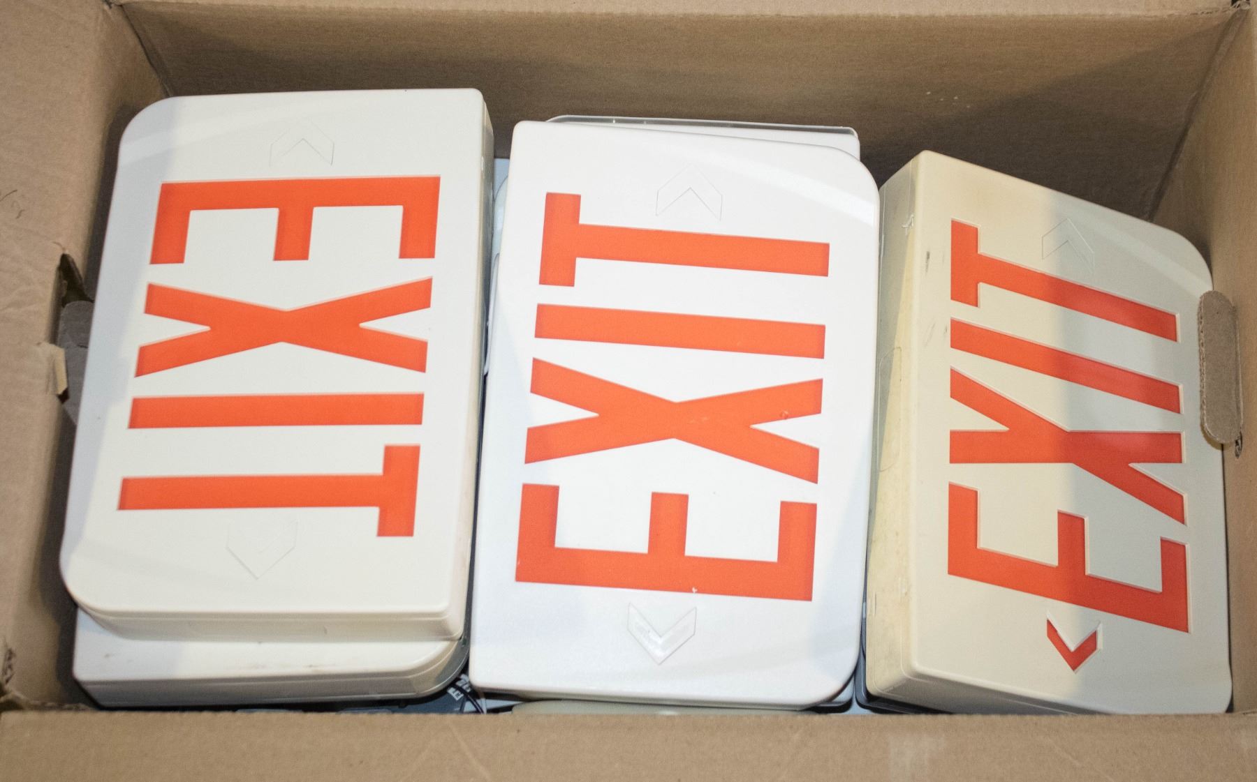 LOT OF 10 HARD-WIRED EXIT SIGN WITH RED LETTERS