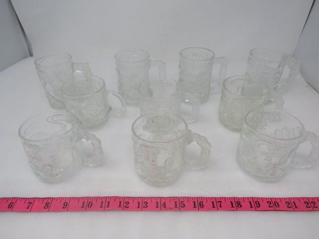 LOT OF 10 MCDONALDS COLLECTOR MUGS (BATMAN, TWO-FACE, ETC) *GLASS*