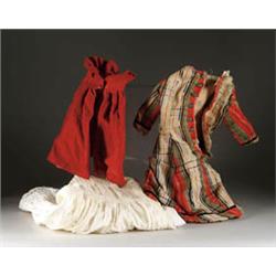 LOT OF 10 PCS. OF DOLL CLOTHING. Includes whites and cotton print dresses in various sizes. CONDITION: Generally very good. 1-3215-1068-1
