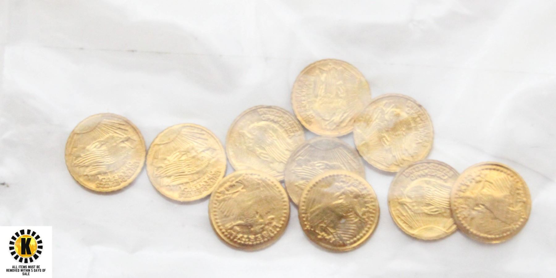 LOT OF 10 REPLICA MINI GOLD PLATED COINS