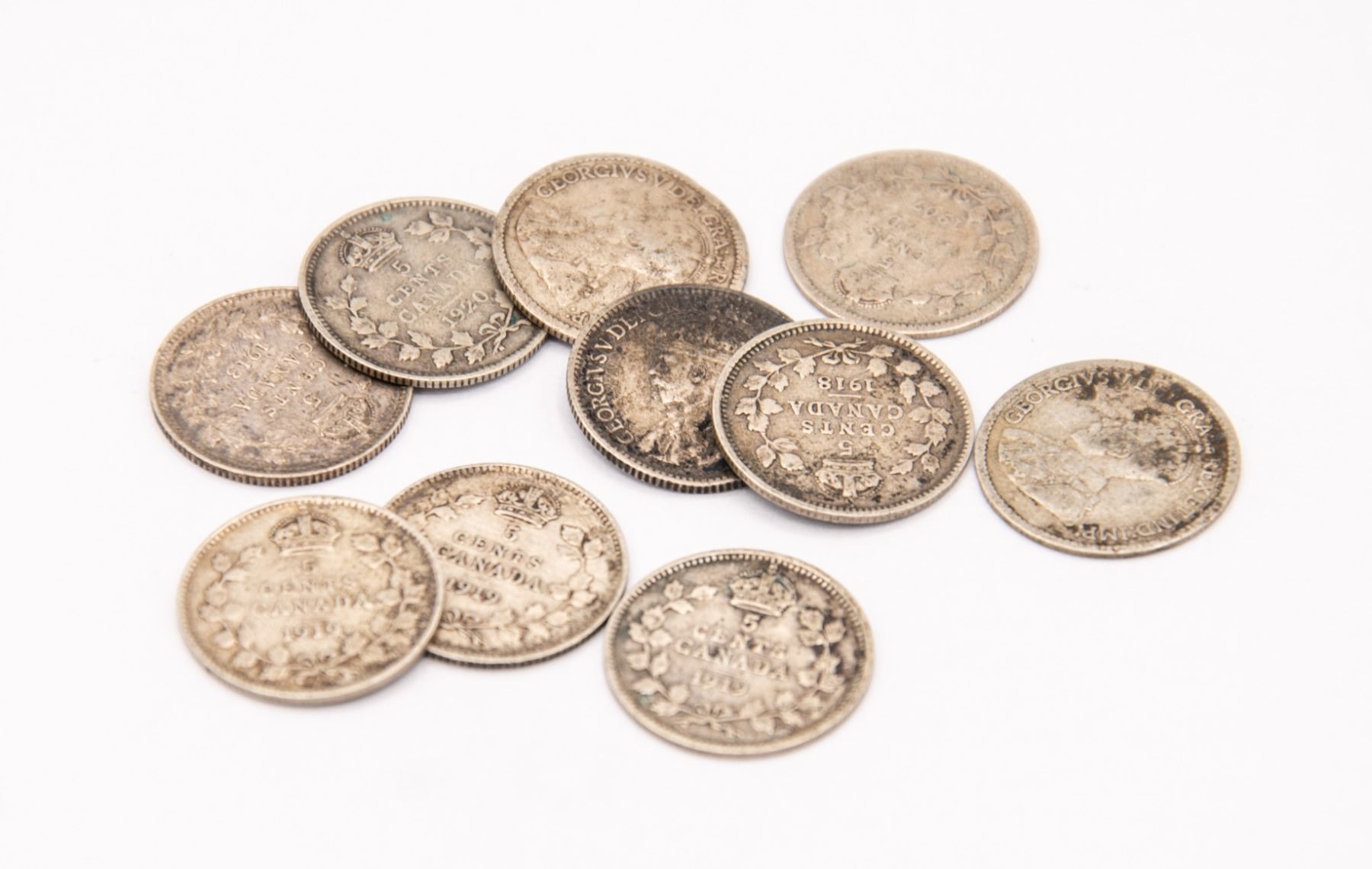 LOT OF 10 SILVER ANTIQUE 5 CENT CANADA COINS
