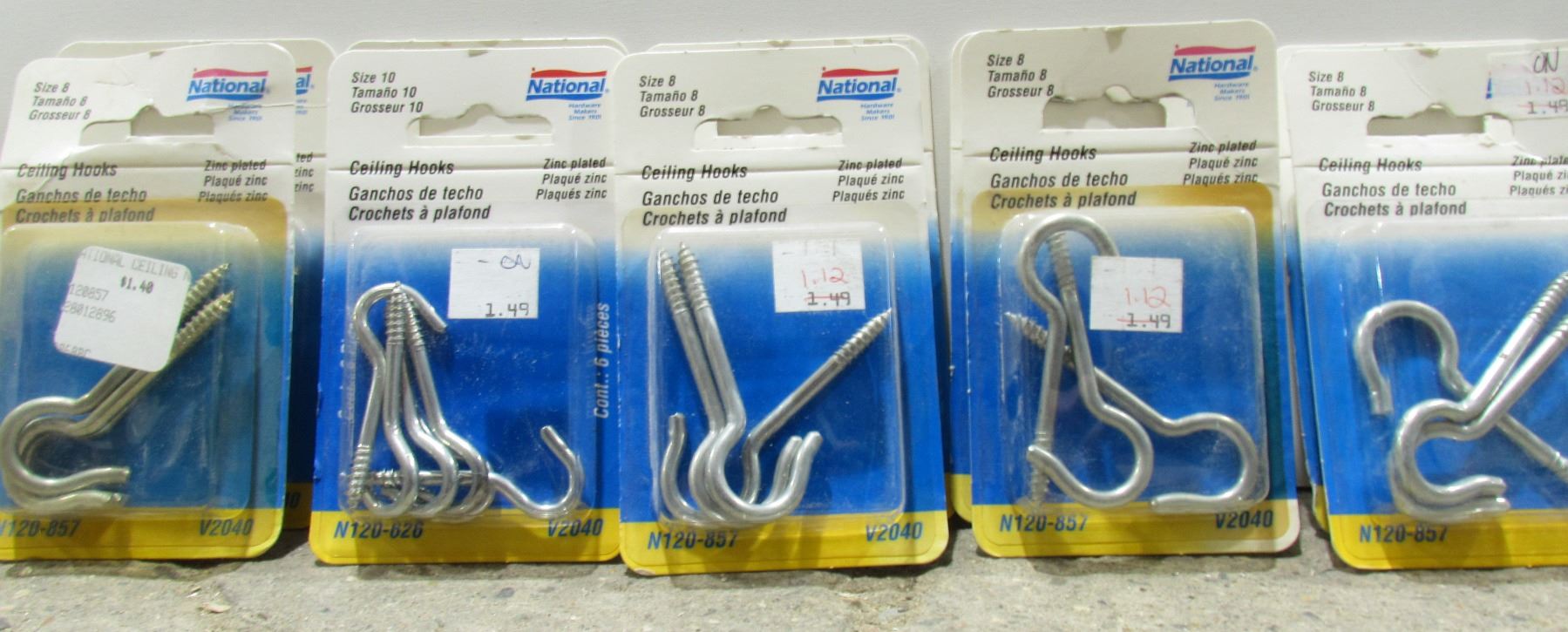 LOT OF 10, SIZE 8 CEILING HOOKS