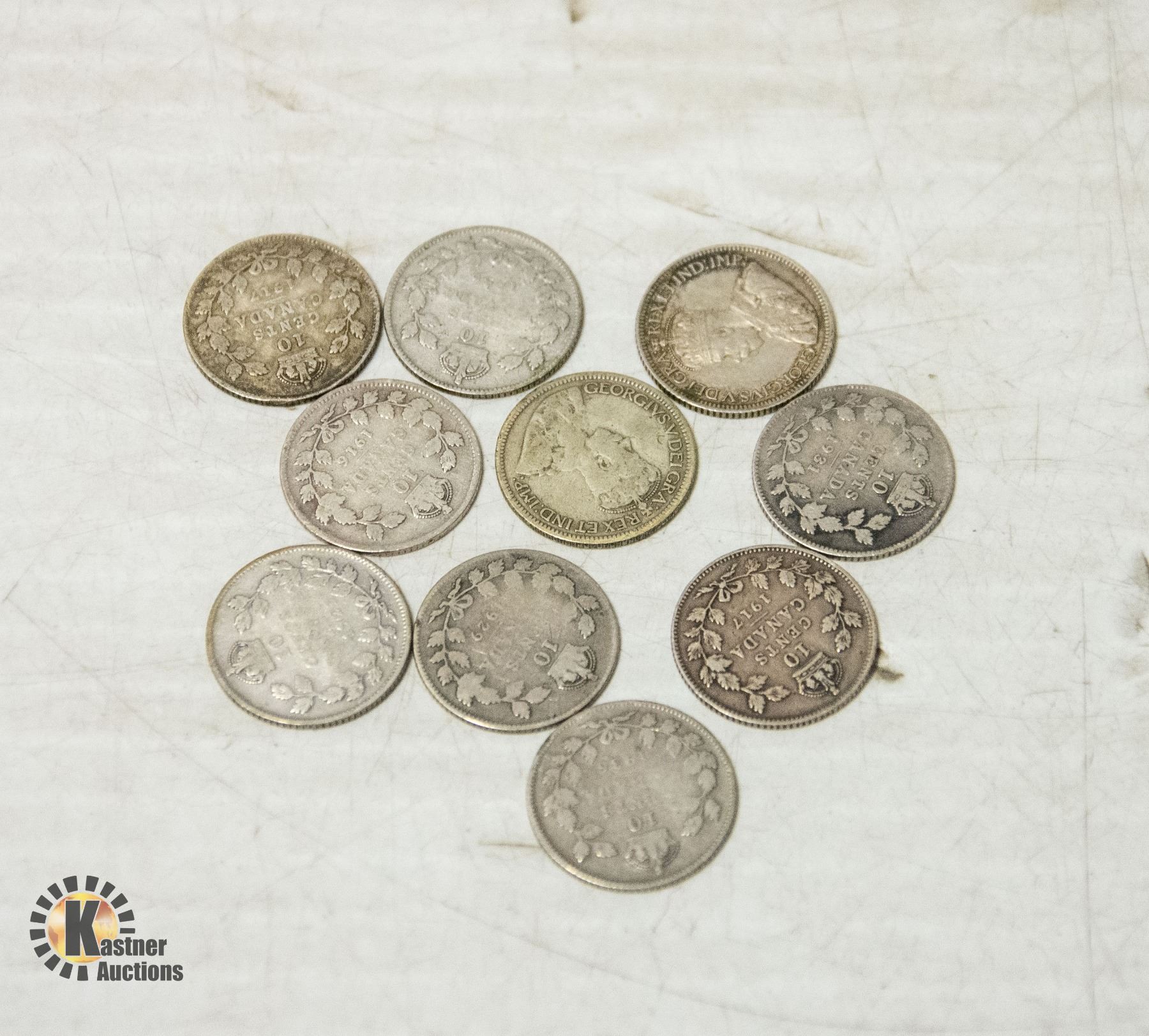 LOT OF 10 VARIOUS OLD SILVER CANADA 10c COINS