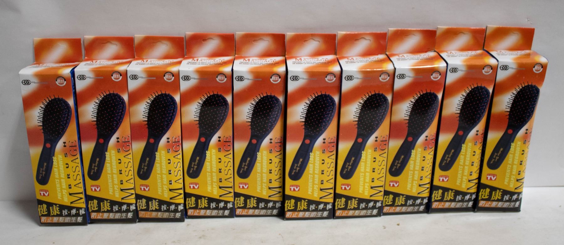 LOT OF 10 VIBRATING MASSAGE HAIR BRUSHES AS IS