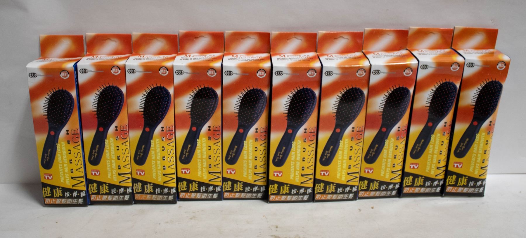 LOT OF 10 VIBRATING MASSAGE HAIR BRUSHES AS IS